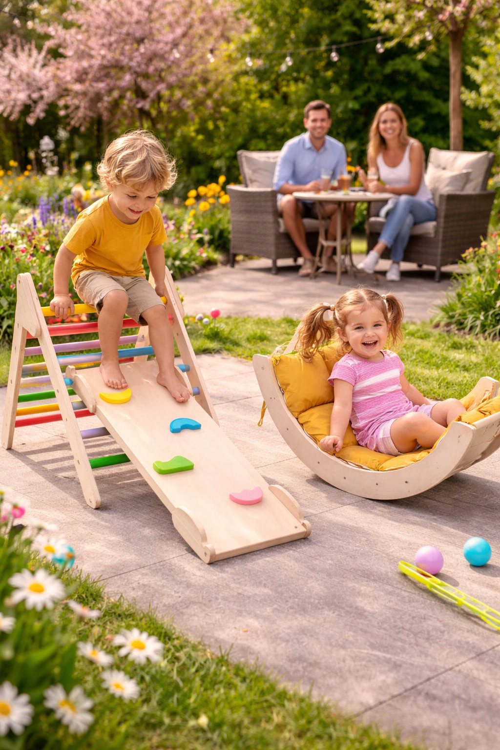 Upotpunite Pikler set i obezbedite svom mališanu još više udobnosti tokom igre uz Pikler jastuk za penjalicu u boji drveta ili kolor Rastimo zajedno.