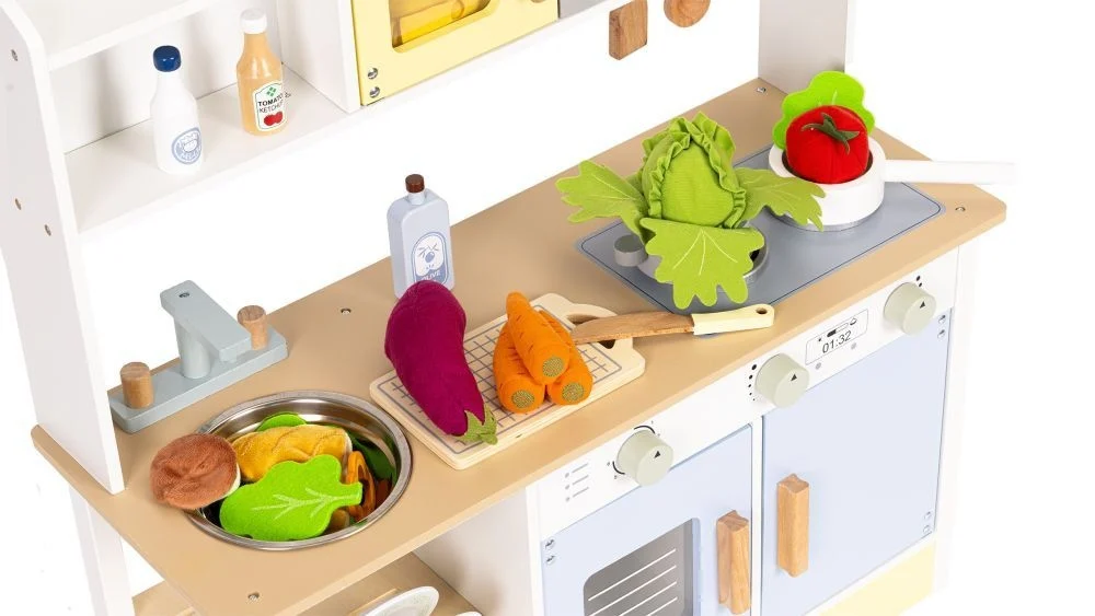 Dečija kuhinja rerna, mašina za pranje veša, mikrotalasna i 12 dodataka Eco Toys