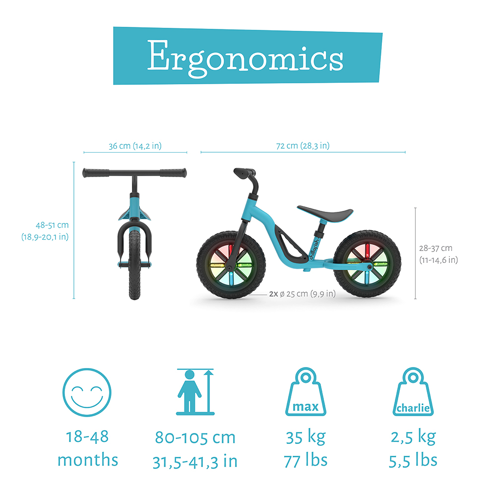 Balans bicikl Charlie Glow plava 10in. Chillafish