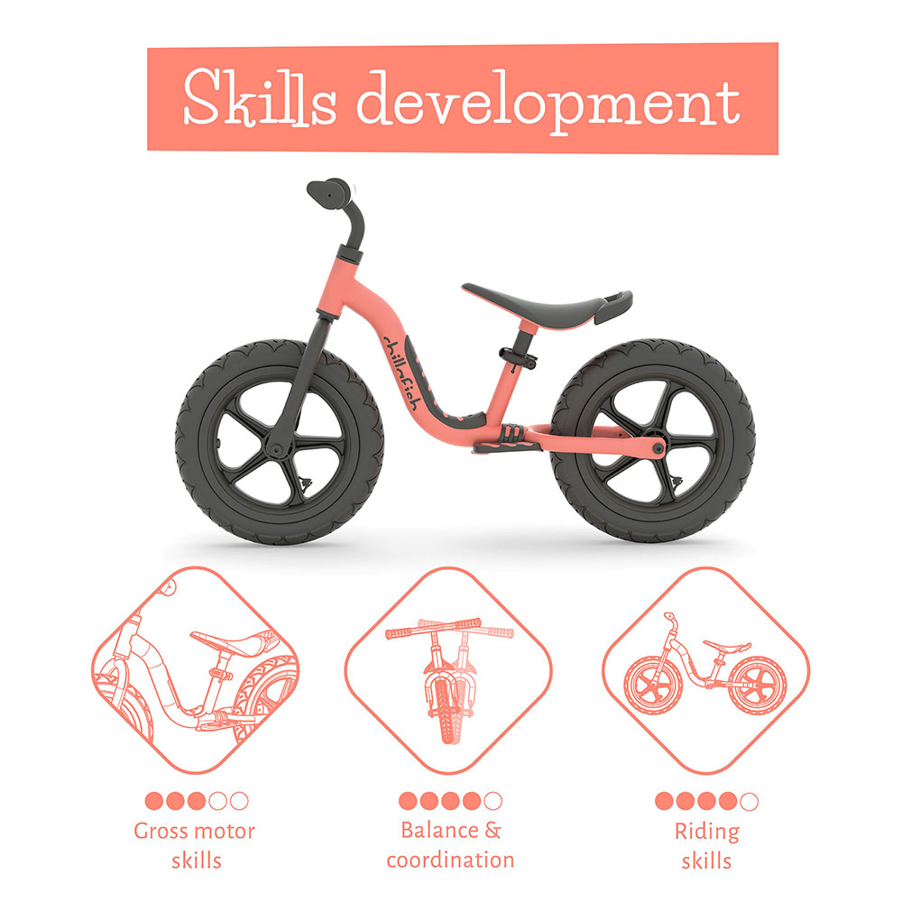 Čilafiš Čarli Sport je hiperlagan trenažer za ravnotežu od 12 inča sa gumama otpornim na probušenje i visokokvalitetnim metalnim ramom težine samo 3 kg. Savršena igračka za treniranje motoričkih sposobnosti, ravnoteže i upravljanja vašeg mališana! Zahvaljujući laganom ramu, vaše dete može lako da kontroliše bicikl, a u kombinaciji sa integrisanom ručkom za nošenje na sedištu, olakšava nošenje i roditeljima. Čarli Sport dolazi sa integrisanim osloncem za stopala i penom za upravljač za pravi trkački izgled. Gume RubberSkin od 12 inča bez probušenja su zaista udobne - više nema potrebe za naduvavanjem guma jer nema rizika od probušenja. Od sada postoji samo zabava!
