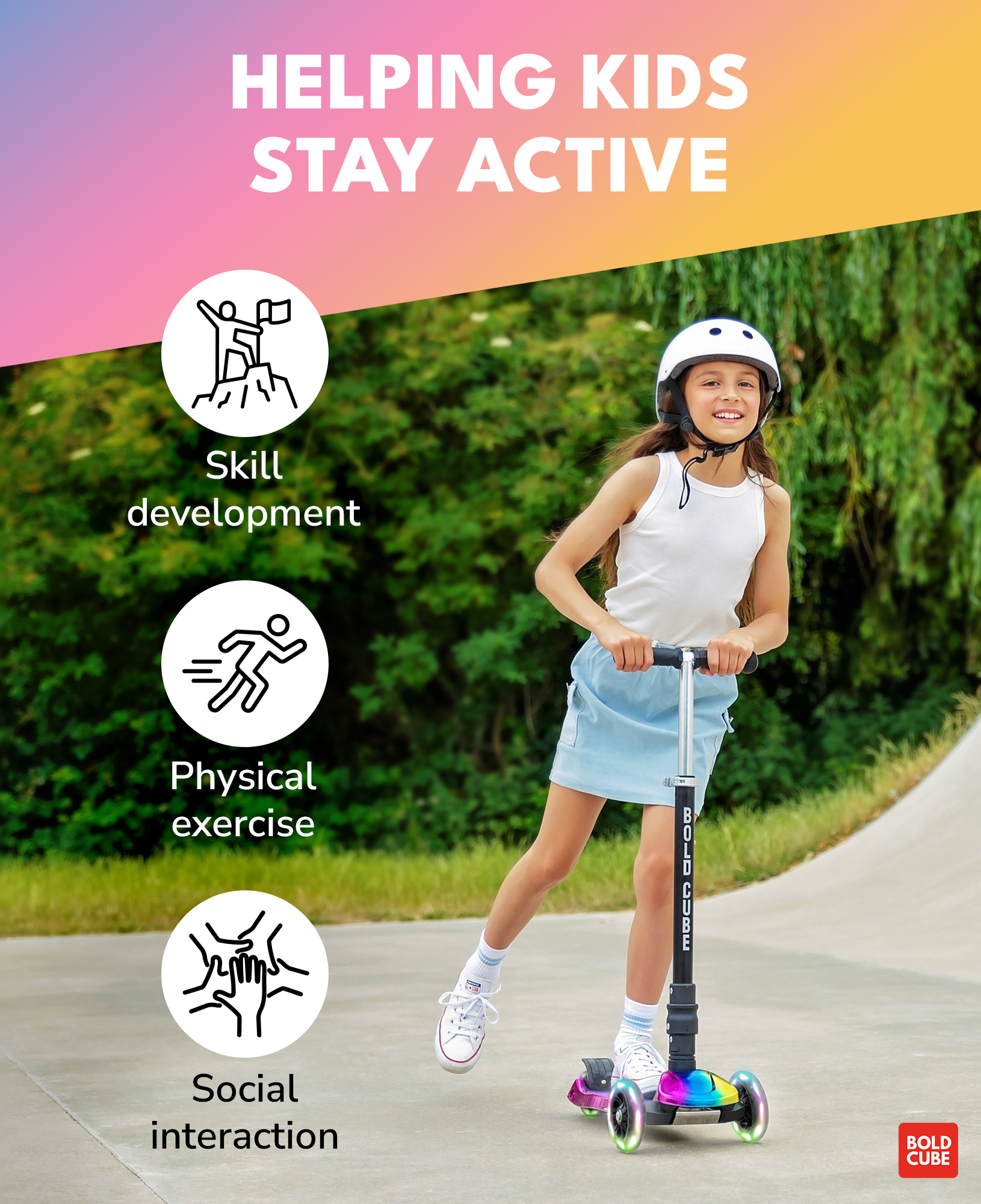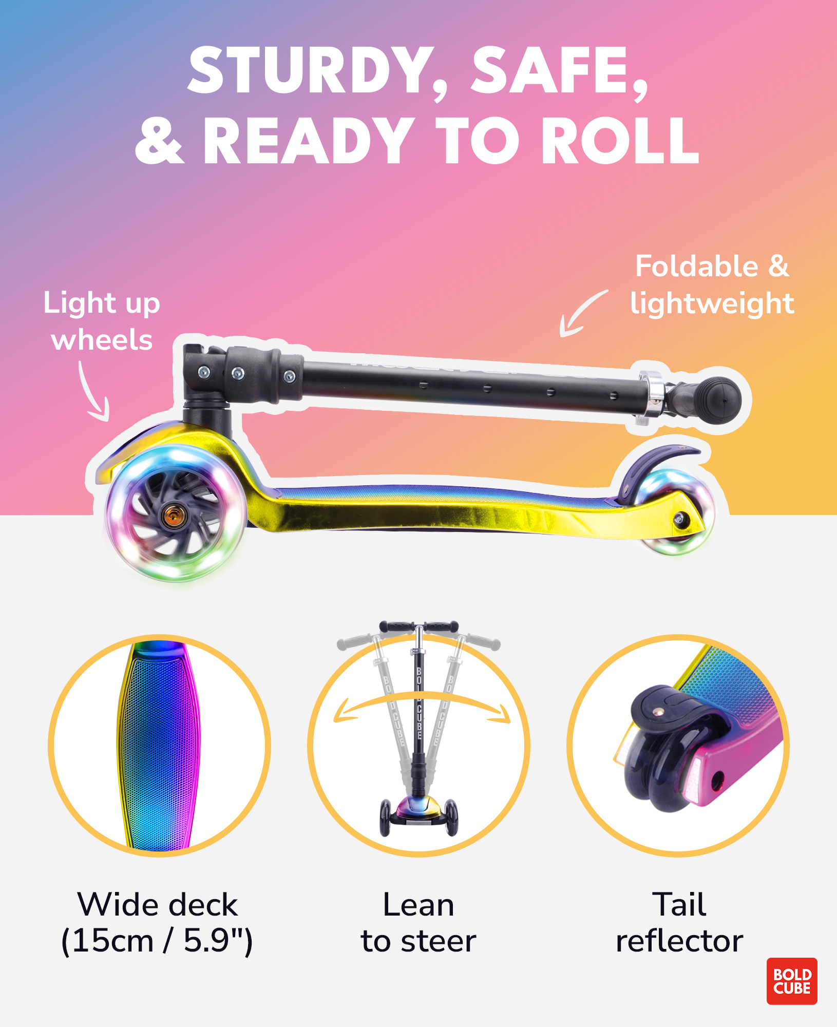 Sklopivi trotinet za decu Electro 3 svetleća točka do 50kg crna Bold Cube