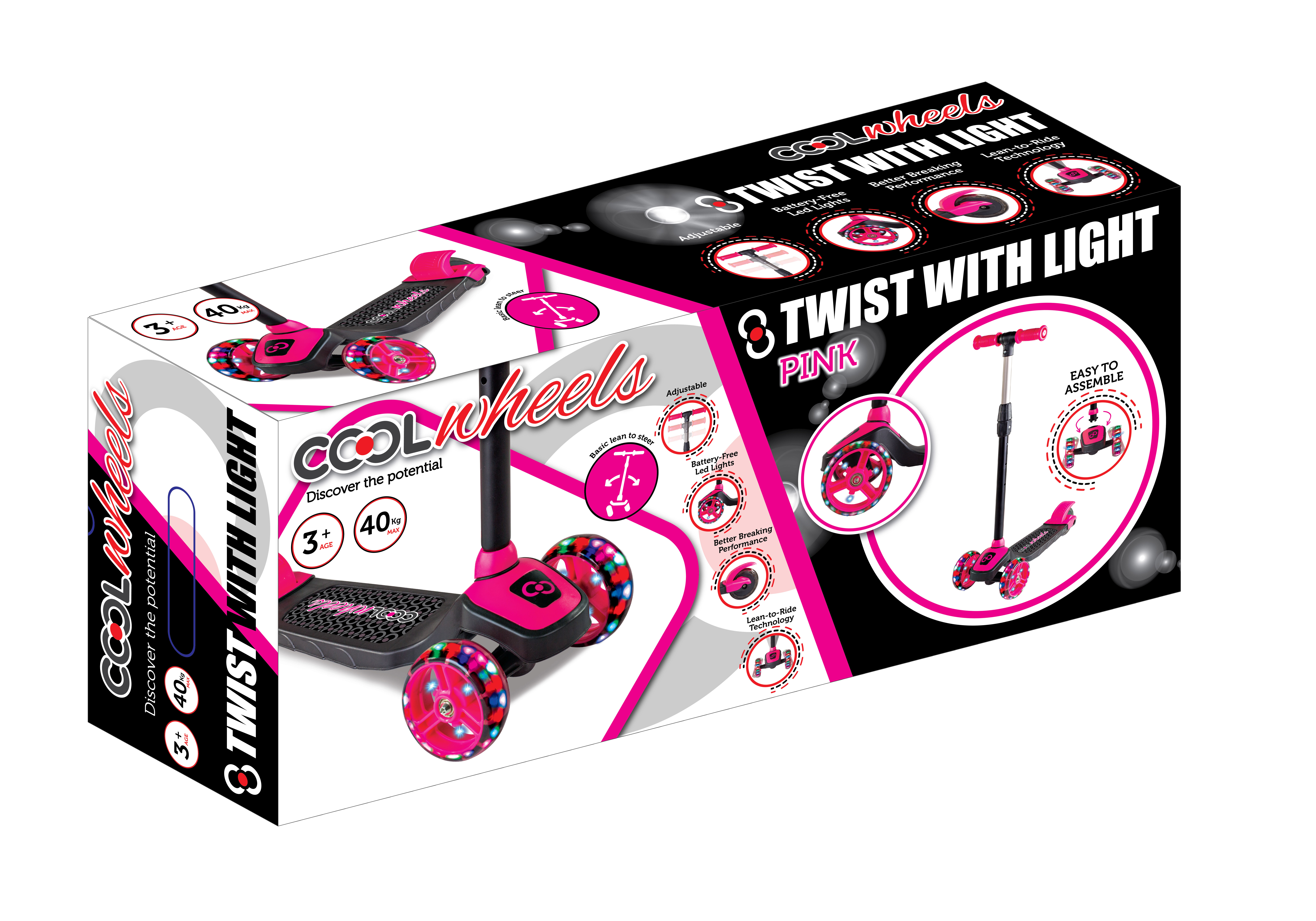 Trotinet Twist Scooter svetleći sa 3 točka do 40kg roze Cool Wheels