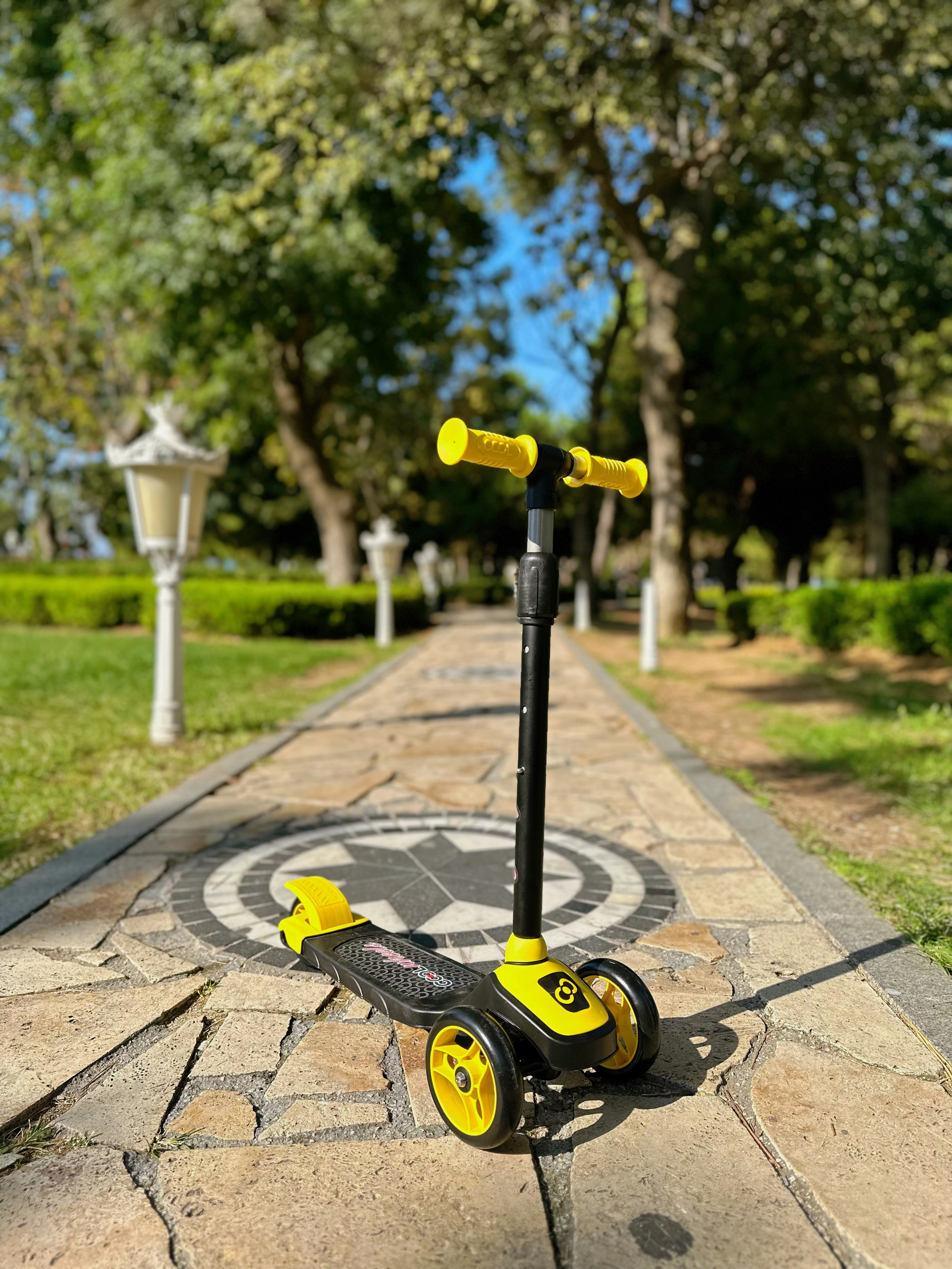 Ovaj dečiji trotinet sa tri točka pruža dodatnu stabilnost u odnosu na klasične modele, što ga čini sigurnijim za početnike. Prednji LED točkovi svetle tokom vožnje bez potrebe za baterijama, stvarajući zabavan svetlosni efekat koji deca obožavaju. Upravljanje se vrši jednostavnim naginjanjem tela levo ili desno, čime se podstiče razvoj motorike, osećaja za balans i samopouzdanja kod deteta.