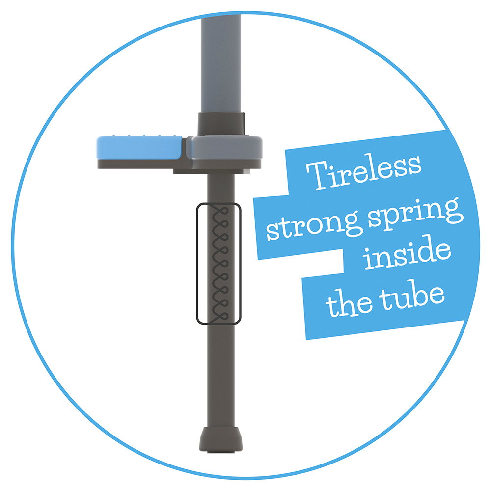 Zahvaljujući čvrstoj konstrukciji i snažnoj opruzi smeštenoj unutar cevi, pogo stik omogućava stabilno i dugotrajno skakanje. Mekana univerzalna ručka prilagođena je za držanje jednom ili sa obe ruke, pružajući bolju kontrolu tokom igre. Idealan je za razvoj grube motorike, ravnoteže i fizičke kondicije, a deca mogu da izazovu svoje prijatelje i pokušaju da skoče što više.