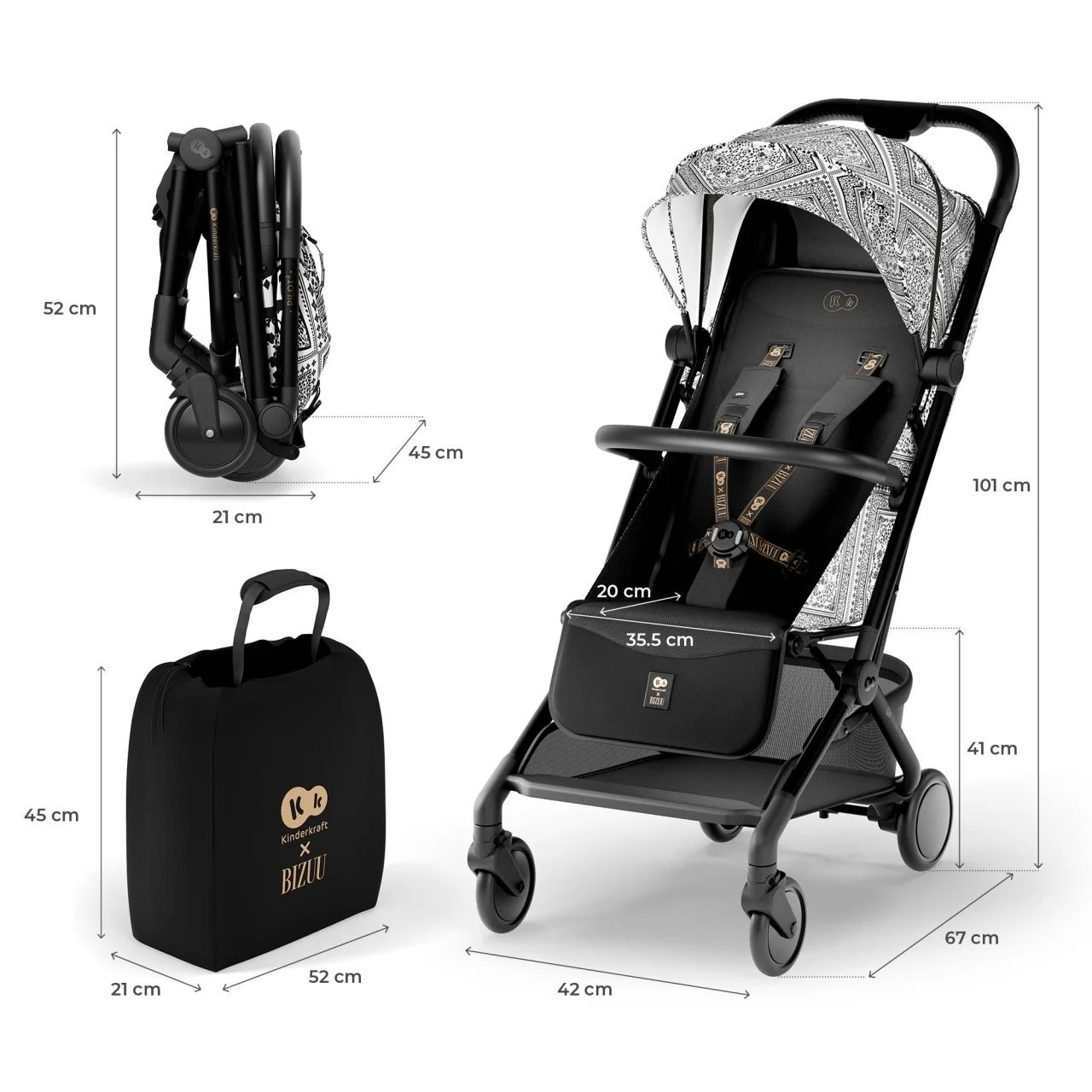Kolica za bebe Pilot 2 Bizuu Lunar Black Kinderkraft
