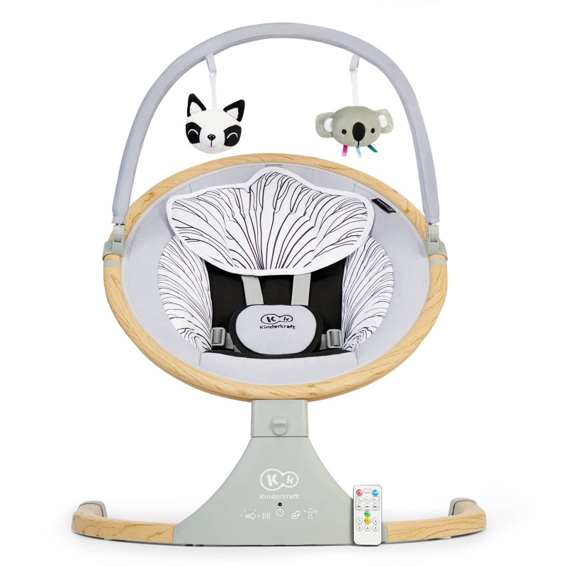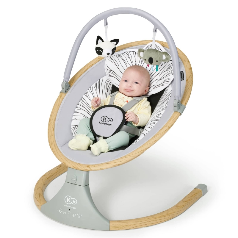 FUNKCIONALNOST Stolica za ljuljanje LULI ima 5 brzina ljuljanja - ovo omogućava ne samo kontrolu brzine ljuljanja, već i prilagođavanje brzine individualnim potrebama deteta. Poseduje čak 12 ugrađenih melodija - ako beba polako zaspi, samo jednim klikom ugasite muziku. Uklonivi uložak na stolici i ojačanja u njemu pružaju detetu potpunu potporu za telo i bolje prilagođavanje visini deteta. Stolica za ljuljanje će uspavati bebu, a zahvaljujući nečujnom mehanizmu za ljuljanje, buka ljuljaške neće sprečiti bebu da zaspi. Traka sa igračkicama ima prelep dizajn, zahvaljujući kojem se ljuljaška uklapa u svaki enterijer. Ne samo da će izgledati sjajno u dečijoj sobi, već i u dnevnoj sobi. Navlaka na stolici za ljuljanje je mekana i prijatna na dodir. Takođe se može skinutii – jednostavno za čišćenje.