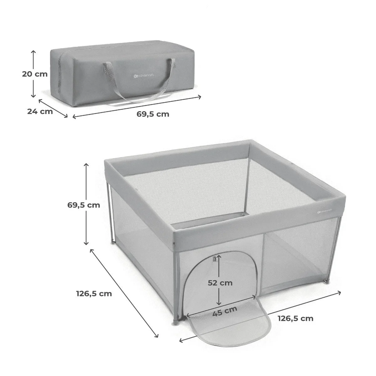 Održavanje stvari čistim nikada nije bilo lakše - Poklopac ogradice se lako skida i pere, što olakšava održavanje higijene i osigurava da je ZIKI uvek spreman za upotrebu, čist i bezbedan. Nogare pružaju odgovarajuću stabilizaciju zahvaljujući usisnim čašama koji takođe brinu o vašem podu - sa njima ćete izbeći ogrebotine. Ukupne dimenzije: dužina 126,5 cm, širina 126,5 cm, visina 69,5 cm Dimenzije nakon preklapanja: dužina 70 cm, širina 24 cm, visina 20 cm Entri: širina 52 cm, visina 45 cm