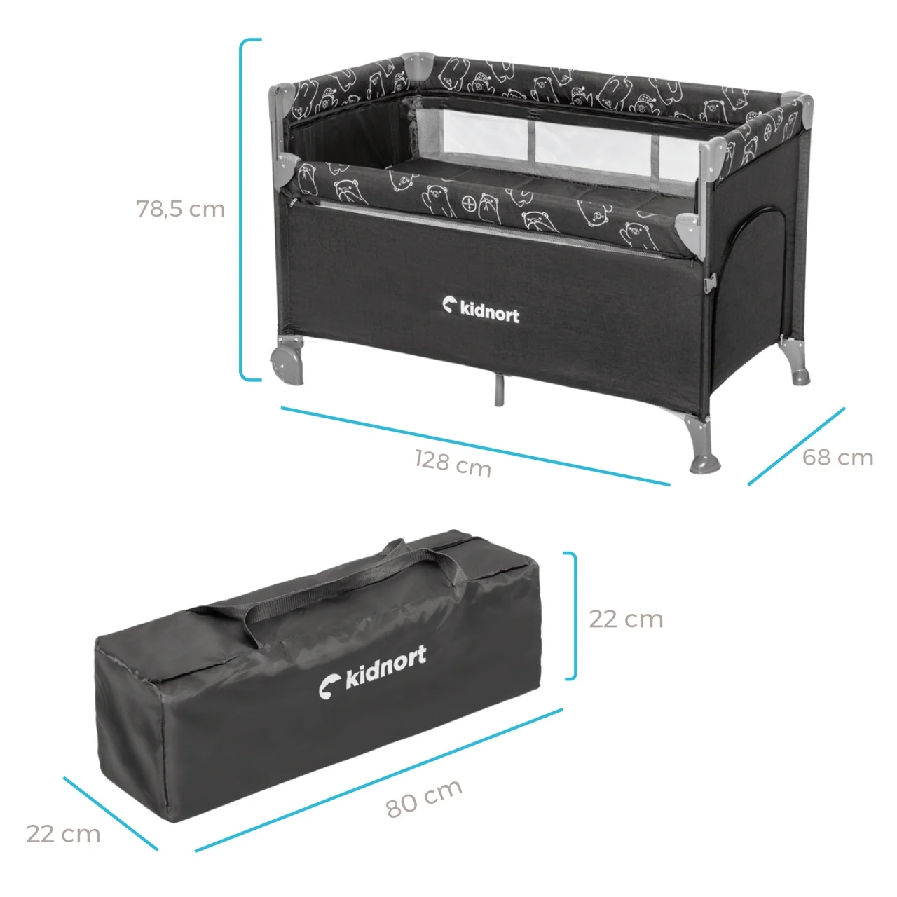 Informacije o proizvodu "Prenosivi krevetac NasteDark grey melange Kidnort"